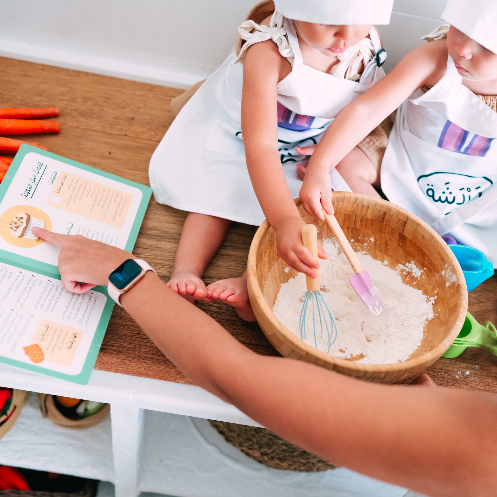 Bring your language learning experience into the kitchen with this adorable baking set - the perfect recipe for fun in the kitchen! Whether you're whipping up the carrot cake recipe at the end of our "Ten Carrots" story book, or something else, baking with your little ones just got better!