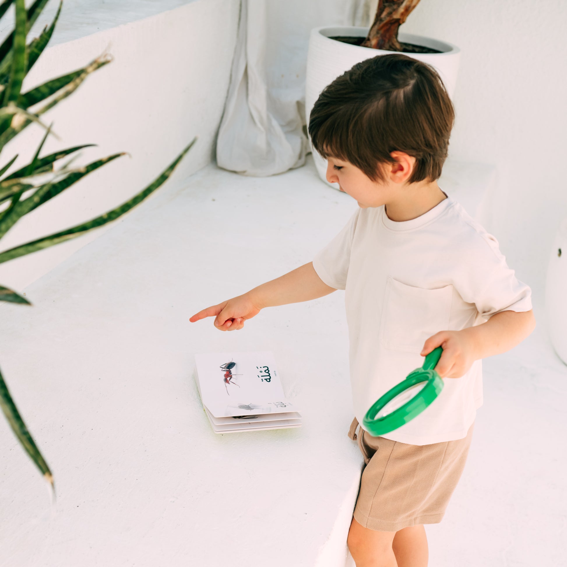 - Help your child learn new words and the Arabic alphabet through association using real images of the world around them.