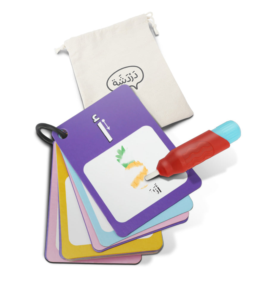 Introduce your child to the wonders of the Arabic alphabet with these Water Reveal Cards! This innovative learning tool includes 28 water reveal cards, each featuring a letter of the Arabic alphabet. Children can trace the letters with the included water brush pen to learn how to write, then reveal a word that begins with that letter for a fun phonics game.